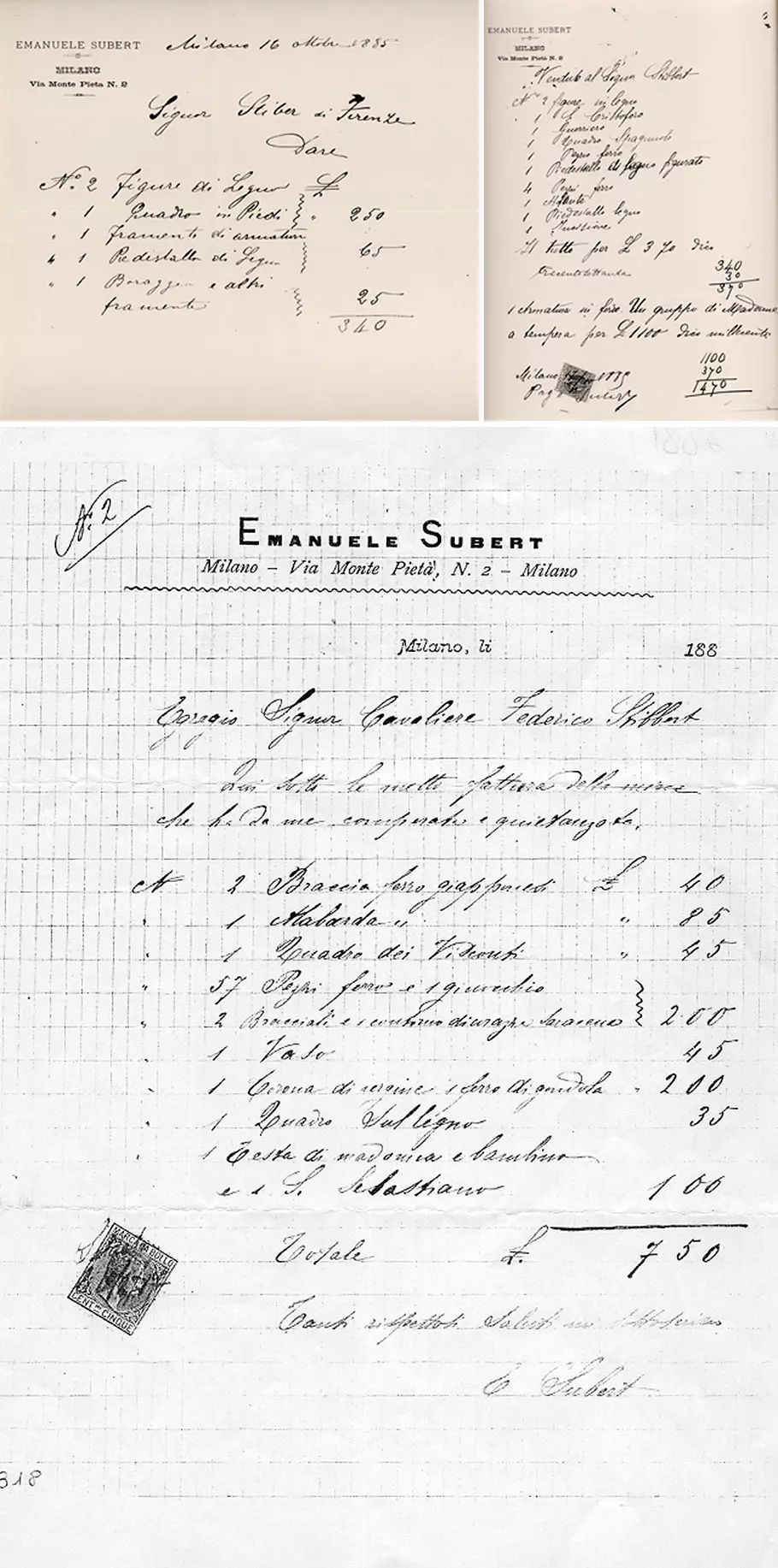 Come Emanuele, anche Rodolfo è tra i fornitori di collezionisti e musei: nel 1904 il Museo Poldi Pezzoli acquisisce “un libriccino d’ore” parigino (POLDI PEZZOLI 1981) e Frederick Stibbert, un anno prima della sua morte, un elmo; in seguito Giuseppe Gianetti, appassionato conoscitore di maioliche, acquista numerosi oggetti che confluiranno poi nell’omonimo museo a Saronno (Ausenda 1996). Si ha poi notizia anche di alcuni importanti acquisti di vasellame di maiolica effettuati nel 1928 nel negozio di Galleria Vittorio Emanuele; tali oggetti sono ora conservati in alcuni musei nazionali scozzesi (Curnow 1992).