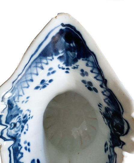 Il numero esiguo di opere coerenti per morfologia, dimensioni e decoro, presente in collezioni private, conferma l’attribuzione della brocchetta in oggetto alla manifattura lodigiana di Antonio Maria Coppellotti nella sua fase iniziale attorno al 1735-1740. Si vedano i due versatoi o brocchette presentati alla mostra della maiolica di Lodi (M. L. Gelmini, in Maioliche lodigiane del ‘700, cat. mostra di Lodi, Milano 1995, pp. 76-77, nn 39-40) e il versatoio, già collezione Robiati, in mostra al Poldi Pezzoli nel 1964 (G. Gregorietti, Museo Poldi Pezzoli, Maioliche di Lodi, Milano e Pavia, Milano 1964, n. 32). Un’opera particolarmente coerente, è conservata in una collezione privata a Lodi (F. Ferrari, La ceramica di Lodi, Lodi 2003, p. 94, n. 4). L’uso di questo stesso stampo ci deriva anche da brocchette che portano decori differenti, come, ad esempio, i due versatoi con decori “alla frutta” (Gelmini op. cit., pp. 118-119, nn. 113-114), a conferma del successo di questa forma nella manifattura Coppellotti ancora attestata nel 1750.